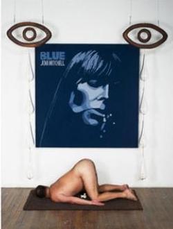 Yet for all the male adulation, women in the exhibition channel the lady of the canyon with more affecting verve. Melanie Schiff's Reflecting Pool, an image of Blue floating in a trash-strewn swimming pool, despite its dappled sunlight, encapsulates a forlorn sense of abandonment. In the video California/Blue, Abbey Williams sits in various Ikea display rooms, crooning sweetly along with the music playing on her earphones. Amid hanging price tags and voracious shoppers, her actions seem, like some of Mitchell's finest tunes, a plaintive protest against the consumerism and obliviousness of the everyday.