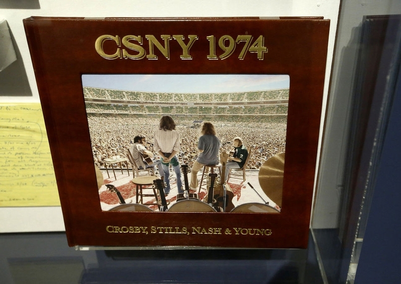 A wonderful portrait of him painted by one-time girlfriend Joni Mitchell fills a wall, and is accompanied by Nash's photos of her working on the Impressionist-style painting. A 1962 test pressing of the Beatles' "Love Me Do" has a featured place. Then there's a spot in a display case devoted to the tragic events of May 4, 1970, at Kent State and "Ohio," written by his former bandmate, Neil Young.