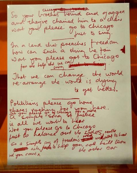 That commitment becomes tangible in the Kent State part of the exhibit, and in a featured portion that focuses on the first Live Aid concert, in July 1985. The display shows the dressing-room assignments for the Who's Who of artists who participated, ranging from Joan Baez, who had Dressing Room A, to Lionel Ritchie, who was given Dressing Room RR.