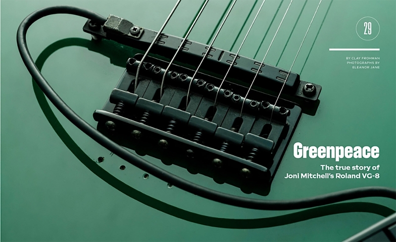 "You've just enlarged my palette," she enthused to Fred. She named the guitar Greenpeace and decided to debut it along with the VG-8 at Jazz Fest. There was some hesitation among the Roland folks. The system was new and untested. It relied on an off-stage tech manually adjusting the tuning on the VG-8 according to Joni's setlist. But Joni would not be deterred.