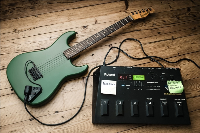 The innovations from Roland kept coming. Chris Bristol, Vice President for Roland US and another Walecki friend, alerted Fred to a new processor the company was working on called the Virtual Guitar. With this device, which would soon be christened the VG-8, the push of a button would assign each individual string of a guitar to any number of separate tunings. Not only tunings but the processor would allow the user to dial in every parameter in the signal chain, from the type of pickup in the guitar to the size of the speaker in an amp.