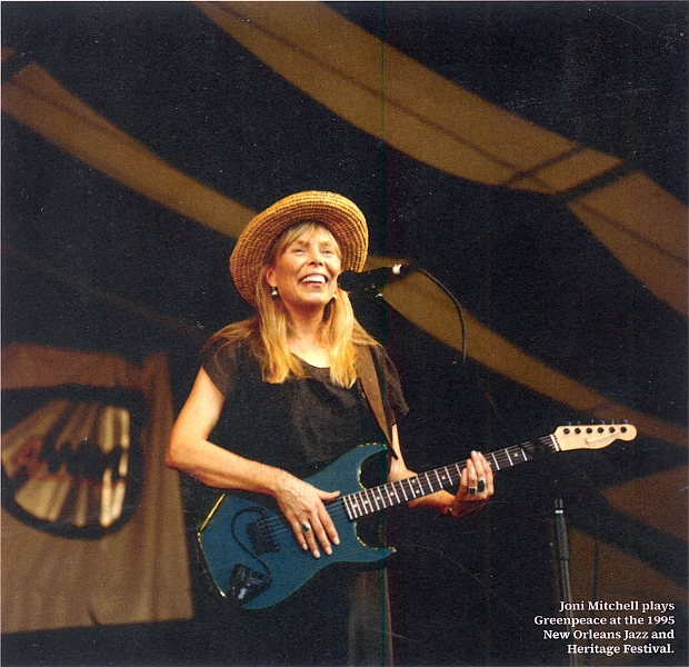 On a bright sticky Saturday in early May 1995, I was sitting with friends near the front of the main performance stage at the New Orleans Jazz and Heritage Festival. We were waiting for Joni Mitchell to come on. She was headlining the closing weekend, a coveted slot, but freighted with even more anticipation than usual because (a) Joni hadn't toured since 1983, more than a decade ago, due in part to the impracticality of adjusting her many tunings between songs or carrying enough guitars and techs to handle it all, and (b) word had circulated that today's show might be her swan song, a final public performance before she called it quits on the "star-making machinery" of the music business, toward which she had for years harbored a simmering antipathy.