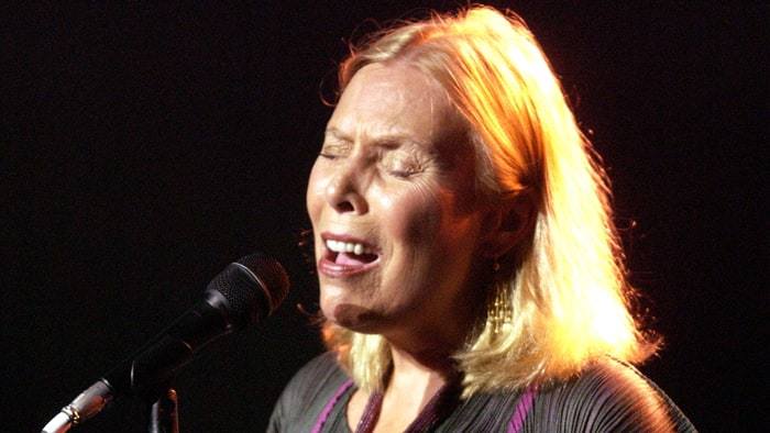 | [Photo by Fred Prouser] Singer Joni Mitchell performs during the 'Stormy Weather' concert featuring top female singers performing an array of pop, jazz and blues standards. |