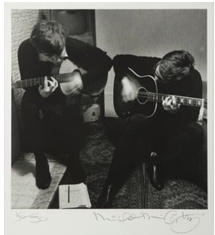 The Beatles traveled from Liverpool to London's EMI Studios on September 11, 1962, the day after receiving the guitars. The first song recorded that day was "P.S. I Love You," followed by "Love Me Do." It was Lennon who used this guitar on many of the recordings they did in 1962 and 1963 that required an acoustic guitar. John so loved this particular guitar that he would take it home and wrote songs on it with Paul McCartney. Beatles hits like "She Loves You," "I Want to Hold Your Hand," "Please, Please, Me," "All My Loving," "From Me to You," "This Boy" and more were written with this guitar. Historians and Beatles fans can also find this particular guitar on the UK singles "Please Please Me/Ask Me Why" and "From Me to You/Thank You Girl." The photograph (seen left) which shows John Lennon playing the guitar had sold for $6,875 separately.