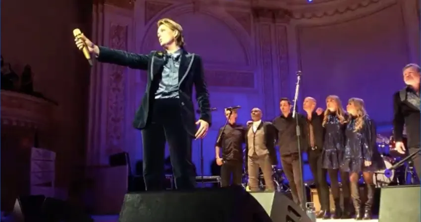 Brandi Carlile paid tribute to Joni Mitchell on Saturday at Carnegie Hall's Stern Auditorium in New York City. Carlile performed Mitchell's landmark 1971 album Blue in its entirety for the second time. The homage came on the eve of Joni's 78th birthday and Brandi led the audience in singing "Happy Birthday" to the legendary singer-songwriter.