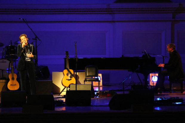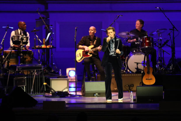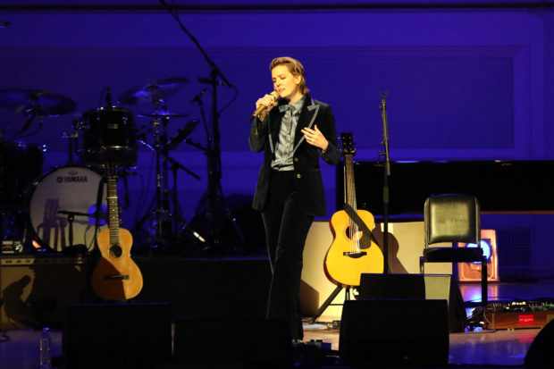 Musical director Jon Cowherd sat at a grand piano to accompany Carlile's soaring vocals on "My Old Man." She tackled "Little Green" solo acoustic, telling a story featured in her memoir Broken Horses about how her wife Catherine Shepherd got her hooked on Blue (and Mitchell in general). It was their first fight; Carlile was resistant to the record from a previous time she heard it from her friend T. Bone Burnett (who was in attendance last night) and found it too dainty. Shepherd insisted she listen to "Little Green" and pay closer attention its emotional story about giving up a child for adoption; Carlile's takeaway, as she told last night's crowd, that it's "the toughest song in rock and roll."