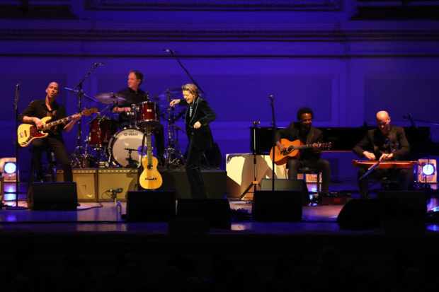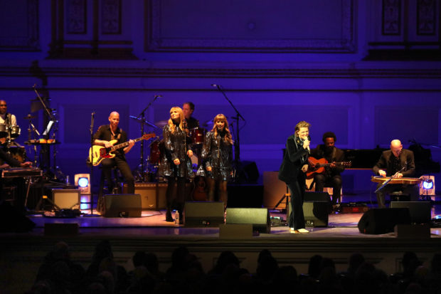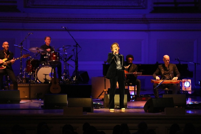 From Tim Hanseroth's opening dulcimer strums on "All I Want," followed by a swift full-ensemble entrance - two drumkits, pedal steel, numerous guitars - it was clear that Carlile and the band were determined to play Blue as faithfully as they could, bathed in (you guessed it) bright blue lights soaking into the back wall and ornate frame of Carnegie Hall's and iconic stage. "I have no interest in adapting it, changing it, or reinventing the wheel," Carlile said between songs. "I haven't put my own spin on it. In fact I've been working my ass off just to learn it in a way that honors Joni and maybe make you feel connected to the way she might have played it for you in 1971."