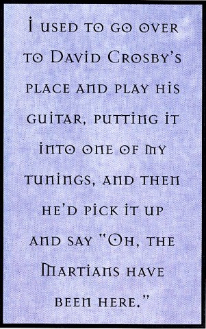 JM: It was. I used to go over to David Crosby's place and play his guitar, putting it into one of my tunings, and then he'd pick it up and say "Oh, the Martians have been here."