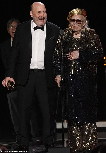 When they took the stage, Mitchell said with a laugh: 'This is the most glitter and glam I ever saw at the Grammys,' but then drifted into a protracted silence.