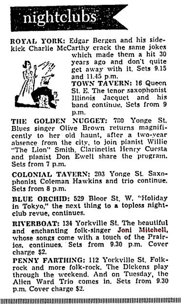 1967.02.18 Joni's next appearance The Riverboat Toronto, ON