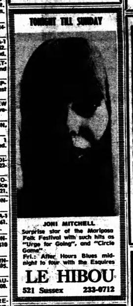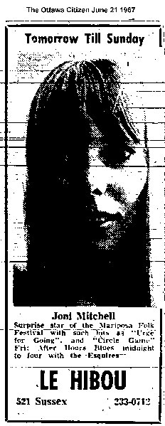 1967.06.22 Joni's next appearance Café Le Hibou Coffee House Ottawa, ON