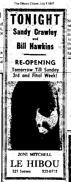 1967.07.06 Joni's next appearance Café Le Hibou Coffee House Ottawa, ON