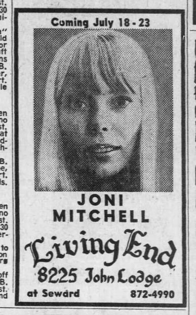 1967.07.18 Joni's next appearance The Living End Detroit, MI