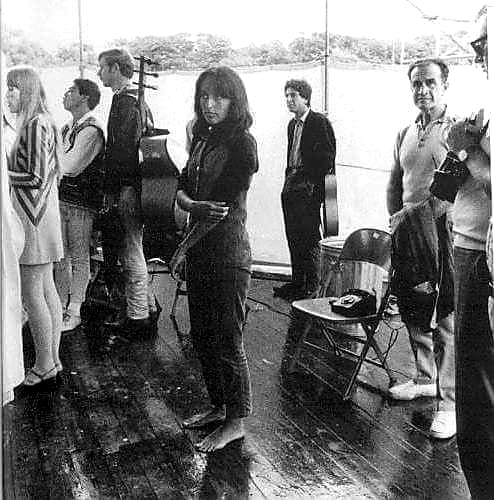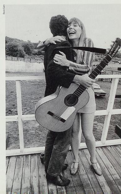 I was 14 on that summer afternoon and unaware that when I left the lawn in front of the stage later that afternoon my life would be radically altered. I had heard the song Michael from the recent Judy Collins recording and I loved it. I had no idea, as she wasn't billed for that afternoon's show, that I would be seeing the author sing that beautiful song. Judy Collins introduced her onto the stage and Joni sang a brief set that stunned the audience. It was a magical day. The Incredible String Band had played earlier on and I had no idea that Music could be so bazaar and whimsical. I think Eric Anderson sang that afternoon. Was the Young Tradition also there? Arlo Guthrie sang Alice's Restaurant which he had sung the night before onstage. It is all a bit of a blur between the night before and the "Joni" afternoon but after that day I turned off AM radio forever. Jai Joni. Shanti and Many Thanks [ed.]