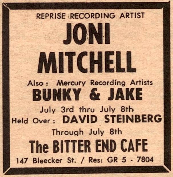 1968.07.07 Joni's next appearance The Bitter End New York, NY