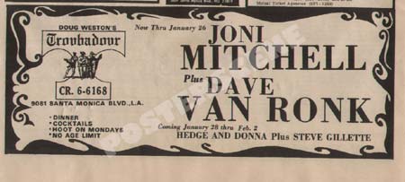 1969.01.21 Joni's next appearance The Troubadour W. Hollywood, CA