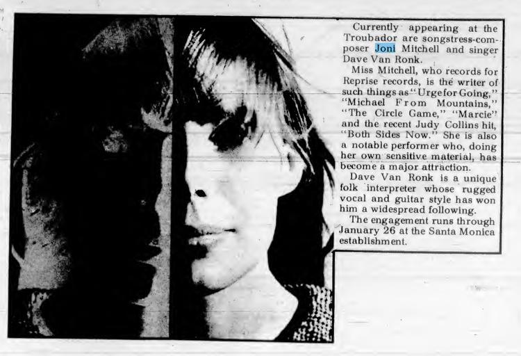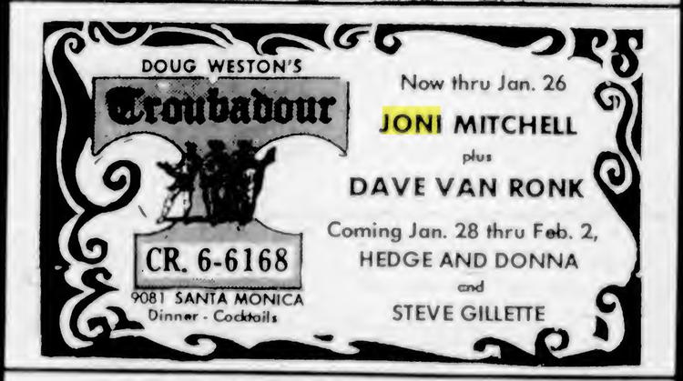 1969.01.23 Joni's next appearance The Troubadour W. Hollywood, CA