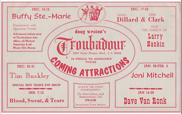 1969.01.26 Joni's next appearance The Troubadour W. Hollywood, CA