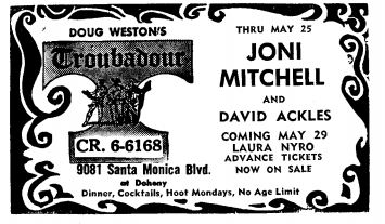 1969.05.22 Joni's next appearance The Troubadour W. Hollywood, CA