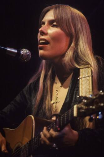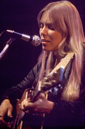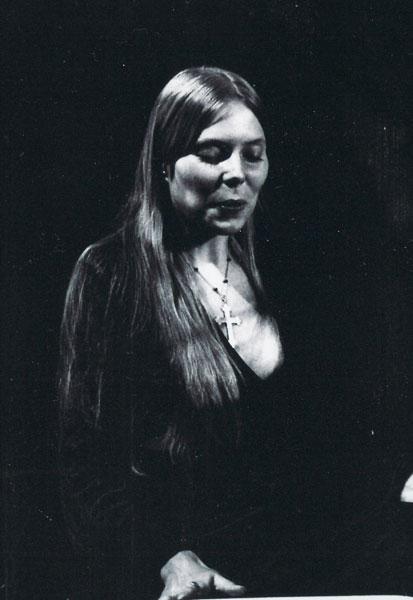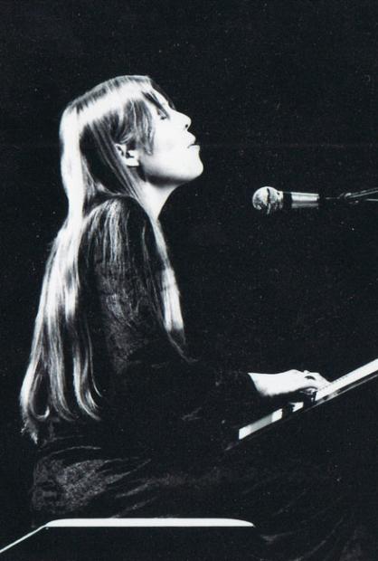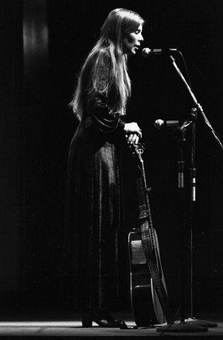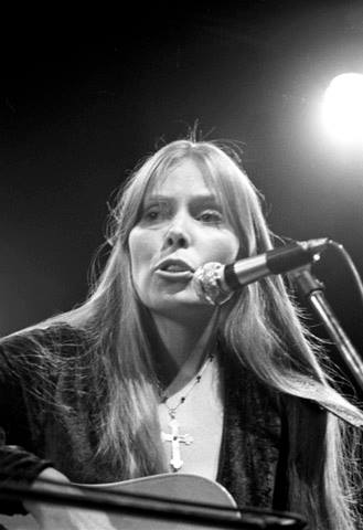 In 1969, I was so lucky to meet her backstage at the Newport Folk Festival. Ramblin' Jack Elliott had given me a ride in through the performers' entrance and insisted I come backstage with him to guard his guitar and cigarettes while he made some last minute preparations. He introduced me as Barefoot Betsy to the stage hands and wasn't taking "no" for an answer. Joni came up to me and pointed at the cigs and said: "Jack said I could have one of those". I picked up the pack and handed them to her and she took one out and offered one to me and lit both of ours. Then she said Jack said I was from Texas and I said "yes" but I was currently living in New Jersey. She said she liked my blue paisley pants and I said her album "Clouds" was one of my greatest treasures. I told her Ramblin' Jack said he probably wasn't going to Woodstock and she said yeah, a lot of people weren't going. She smiled throughout but I could tell small talk wasn't her thing- okay cuz I was not a big talker myself. She called Doug Kershaw and Mimi Farina to come over and meet me, and waved "bye" and hollered "Jail Bait" in Jack's direction. He already knew I was sixteen and I'm sure the rest of them did too after seeing me gag on the cigarette and blush to my toenails. Although Jack dedicated his "Don't Think Twice" to me (Barefoot Betsy) I floated on Joni's cloud the rest of the evening and sadly learned the next day she had gone. Newport was a remarkable venue with an amazingly talented roster that particular weekend and a fun memory. I so hope Joni will be alright. [ed.]
