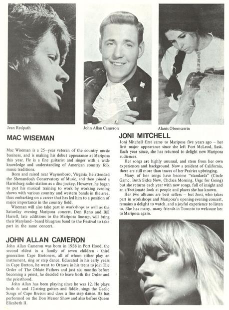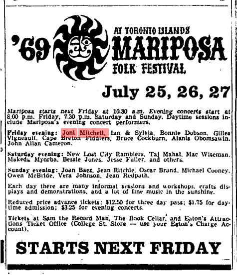 - Joni on beat at Mariposa Folk Festival: Windsor Star,