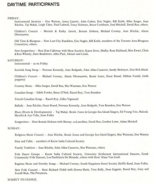 - That lovin’ spirit returns to the Mariposa Festival: Toronto Daily Star,
