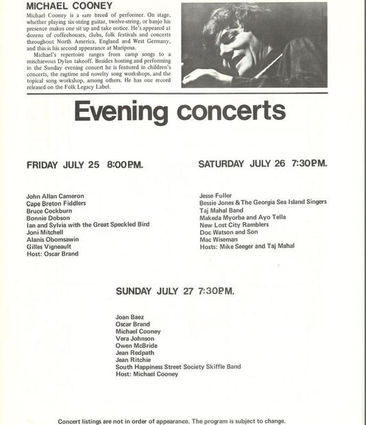 during the ninth Mariposa Folk Festival. Portions were filmed