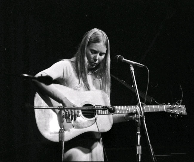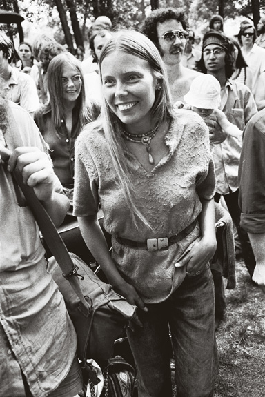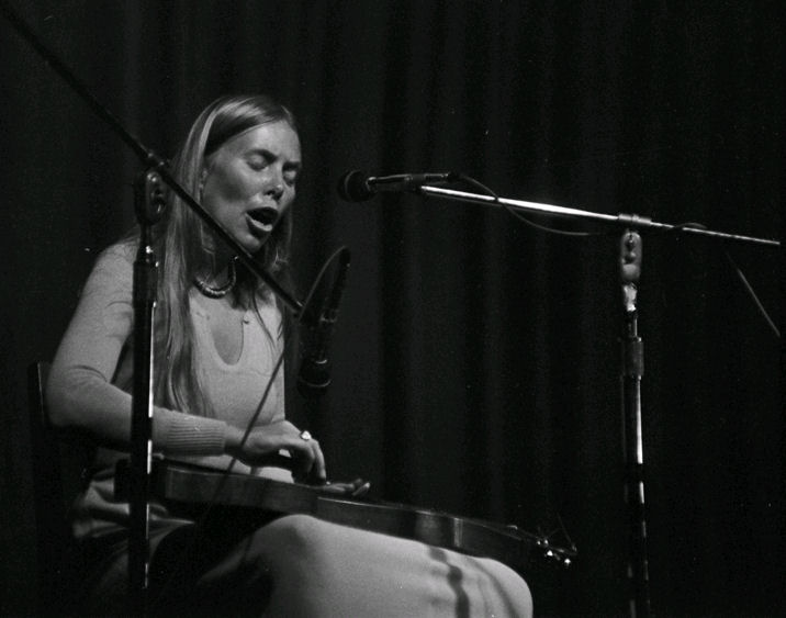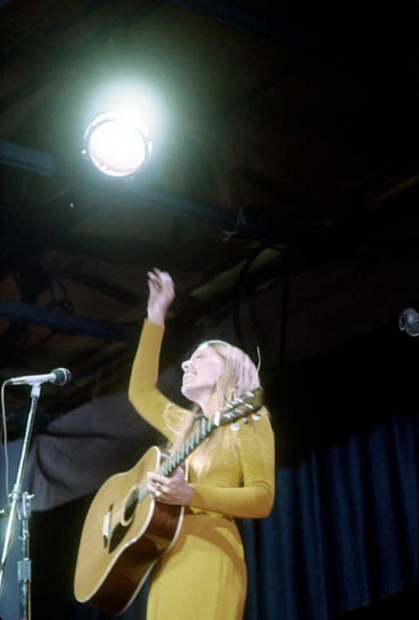 I remember seeing Joni sitting on the grass talking with musician Jean Ritchie who played the dulcimer. I was too afraid to approach them. In fact, no one seemed to approach Joni as she walked around.