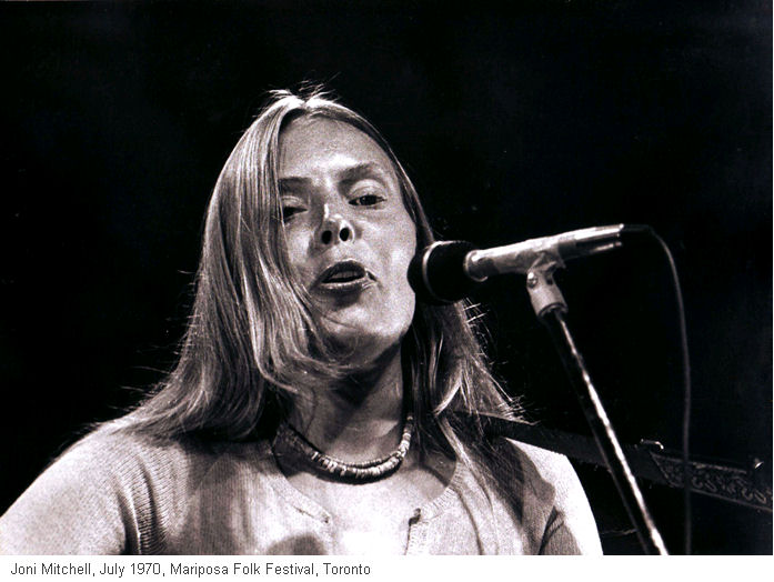 I was a month shy of my 17th birthday and had just returned from Vancouver on my first trip ever without the folks. We drove in a 1965 Falcon Futura convertible. Joni was all over the radio with Big Yellow Taxi and life was grand. When I got home to Newmarket, Ont. I bought Ladies of the Canyon and soon after made it to Centre Island to witness an unforgettable experience,Mariposa! Of course, I fell in love with Joni, but also, I became a life long fan. It was also my first introduction to James Taylor, I didn't fall in love but still I am a great fan. I saw Joni twice more in concert, both amazing concerts. I went back to Vancouver the next year and worked in a restaurant at 1174 Denman and this guy who worked there named Leopold says Hey, Dan,do you want to go down to Gastown with me and hang out? Well, I didn't go and he came back to the restaurant a couple of hours later and says he just met Joni Mitchell in some cafe and some guy grabbed a guitar for her a she played a couple of tunes then signed autographs. "You should have come with me" He shows me this scrap of paper with Joni's signature and a little drawing she did of Leopold on his friggin bicycle. He witnessed two of Joni's amazing talents up close and personal and got to keep one of them as a souvenir. All disgruntlement aside, I would like to thank Joni for sharing her life in song and picture.