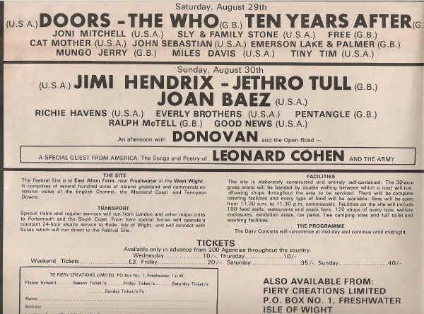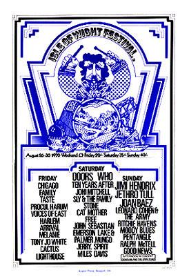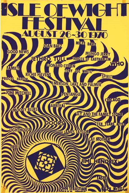 The grounds chosen for the event were on East Afton Farm in Freshwater- a huge field with a sweeping hill behind it. To prevent folks who hadn't paid from getting into the show, the promoters put up two huge corrugated-iron fences, and hired police to patrol the fences with trained guard dogs.