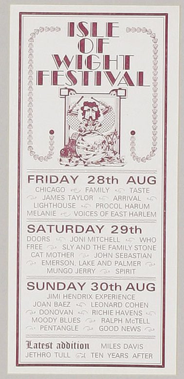 The ill-fated third (and final) Isle of Wight Festival was held on an island just off the southern coast of England, in August 1970. Among the musical acts performing were The Doors, Kris Kristofferson, Jethro Tull, Donovan, The Moody Blues, The Who, Leonard Cohen, Jimi Hendrix (his last ever U.K. performance before his death just 20 days later), Miles Davis and, of course, Joni Mitchell. Although there were 600,000 attendees during the long weekend of shows, only about 50,000 of them actually paid for tickets.