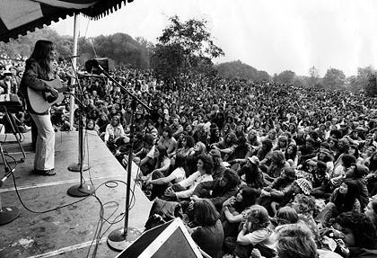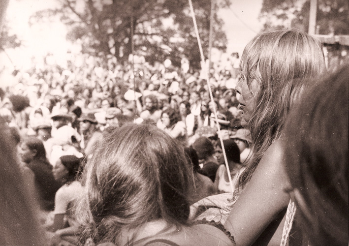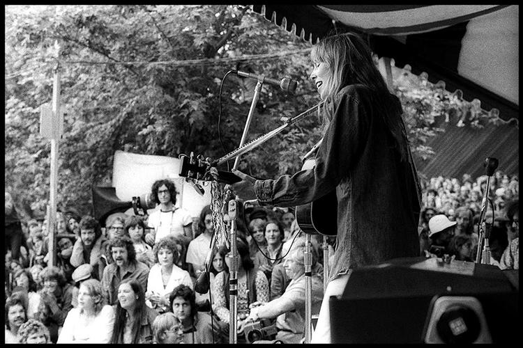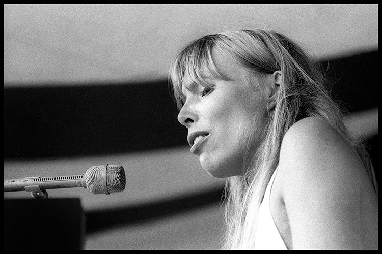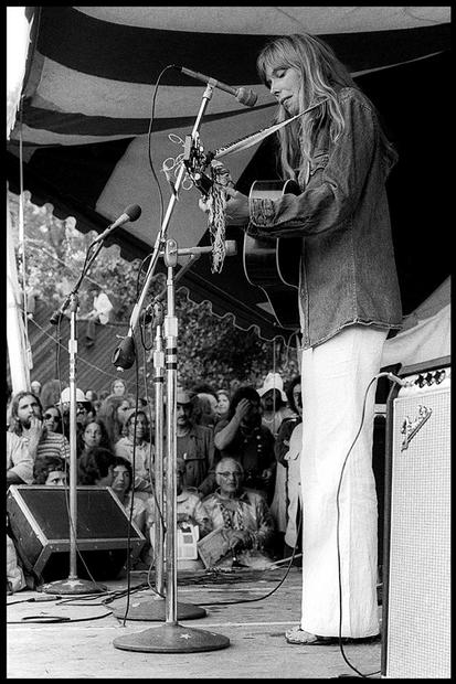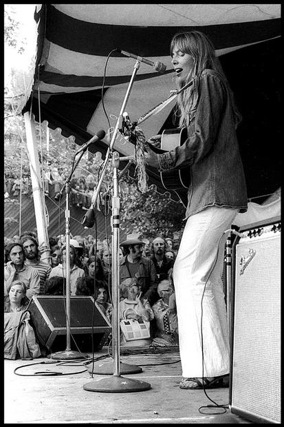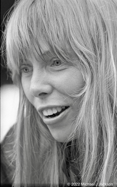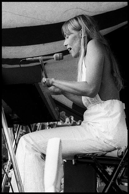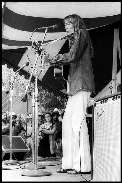 I was on stage with Joni for part of her set. I was standing in the crowd with my mother, but I, being 4 years old and short, wanted a better view. I wove my way through the crowd, walked under the outspread arms of the security guy and climbed up on stage. Meanwhile, my mother realizing I wasn't in her immediate vicinity began to frantically look for me in the huge crowd. While she was rushing around she became aware of murmurings in the crowd about a little boy. It was then that she looked up and saw me on stage dancing. I must have recognized the song (my mother is a huge fan) and thought the appropriate thing was to dance. It must have been about this time that the security people noticed me and tried to take me off stage. The crowd near the stage turned against the security guy, who realized that a large section of the crowd were watching the events unfold. The man stopped trying to grab me, but maintained a close watch on me. Minutes later my mother appeared at the edge of the stage and whisked me away.