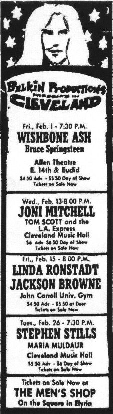 I think I was at this concert in Cleveland. Down near the front in the third hand side. Joni wore a black jacket with bid red roses on each upper sleeve. I remember it was winter snd I remember she was amazing. It was dark onstage and in the hall and those roses really stood out!