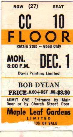 it for years afterwards and still do. Music was great and Joni as usual was fantastic. It was also neat to see Bob D. perform with his mask makup on and the assembling of all the singers for the final song or two. Great to have these wonderful memories from Maple Leaf Gardens in Toronto. ...Tim in Ontario