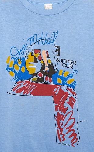 Behind the food and drink was a huge empty blackboard. I had just read an interview Joni and had what I thought was a very cogent response. So I wrote it on the blackboard almost filling it. Not long after I see a guy erasing it. He's the stereotypical backstage manager with coke dust on his nose. I asked him why he was erasing it, he responded, "I don't want anything messing with Joni's head." Well, I could see his point.