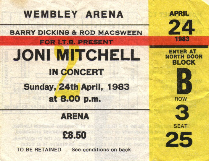 I'd been listening to Wild Things for several months. "Scratchy cocktail rock" one critic called it, but I thought it fresh and concise. In any case I made sure I had good seats for my first (and so far only) Joni appearance, a single, sold-out UK show in the 10,000-seat Wembley Arena.