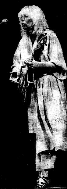 It was a stormy afternoon in Baton Rouge. The weather cleared an hour or so before the concert. The LSU assembly center was about 3/4 full but the croud was respectful and familiar with her music. She walked onto the stage without introduction in a white lenin tiered outfit with white cotton leggings that were fashionable at the time. The opening number was Coyote and she sounded under the weather. Her voice cleared and became strong as she warmed up. She played all of the older familiar songs to audience delight and several from Wild Things Run Fast, new at the time. She dedicated Cotton Avenue to her friends, the truckers on the highways and byways of the south. The song was morphed into a rock and roll number by the new arrangement. After an intermission, she returned to the stage dressed in a rust colored jumpsuit. Many of the crowd gathered in the footlights for the final numbers which she took time to bask in. The encore, Wookstock, was a solo and she continued to play guitar as she disappeared into darkness at the back of the stage. A fairly good sized crowd gathered at the stage service area hoping to get albums autographed but security was tight and the lemo was backed down a ramp and behind closed doors for a speedy departure. [ed.]