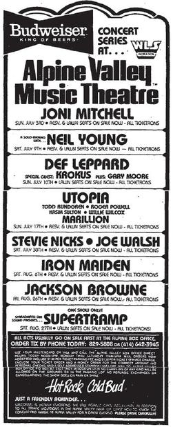 Steve Polifka remembers: "Gloria, Terri and I were in Row M, just about center. We even brought binoculars, even though they were good seats. The concert was to start at 8, and she was late, so the three of us started chanting very loudly, "We want some solid love," for about 5 or six minutes, thinking how cool it was to be rowdy at a Joni concert- LOL. Soon I froze, and one of them asked me what was wrong, to which I responded, "There she is!" They asked me where, so I pointed out this blonde figure peaking out (stage right) of the curtain with an 8mm camera pointed right at us. I felt so foolish that I had to sit down! A few years later I was working at a video store, and got a prevue magazine which featured an article about her Refuge of the Roads video, and how she had interspersed concert footage with her own 8mm shots. I just about ****! I freaked, remembering that night, calling Gloria when I got home. Needless to say, I worried about nothing, having ended up on the cutting room floor..."