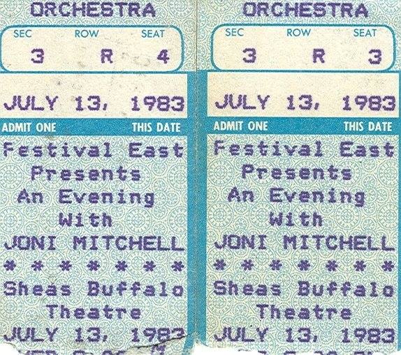 She wore a beautiful gown and commanded the stage moving from guitar to dulcimer, to piano. The band was tight and spot on. The live version of "Song for Sharon" still haunts me to this day. What I wouldn't give to see a tour of such musical diversity come through town again, but I don't think we"ll ever another artist like Joni. As for the date from hell who wouldn't shup up. I never saw her again. Thank God. [ed.]