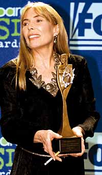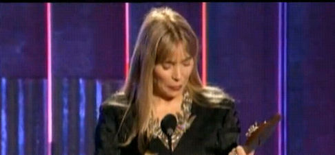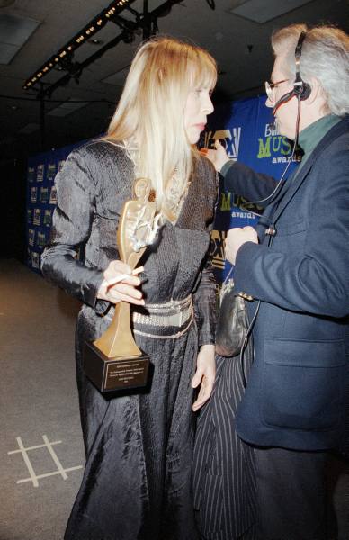 Joni herself looked attractive in a midi-length black dress, and long blond hair. She was openly grateful to Timothy White for orchestrating the affair, and continuing to back her releases - more than anything, it seemed that was why she was happy to be there. She indicated that she was trying to find some humility, but her demeanor was aggressive: in front of this audience, which was there to celebrate the various Billboard chart toppers (hence the icons of popularity), Joni noted that she had through the years been rejected and dismissed (by many from this same community). Her salvation had come from the record buyers who continued to tell her how her lyrics had affected their lives; that, rather than professional recognition, had kept her going, and those were the people she most wanted to thank. No one in the audience could argue with that sentiment.