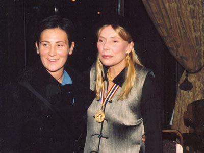 Tomaz Jardim, whom you may recall as one of the "window people" at 1994's MuchMusic broadcast "Joni Mitchell: Intimate & Interactive," represented the home page in Ottawa and was lucky enough to get an invitation to the post-gala reception. Tomaz reports that he spotted Joni in the stairwell with her protege Sarah McLachlan, smoking, drinking champagne, and eating chocolates. Joni was telling Sarah how she first met Jimi Hendrix at Ottawa's Capitol Theatre in 1969. When Joni saw Tomaz, she instantly recognized him and welcomed him over. "I remember you from the Intimate & Interactive -- we were just watching that a few days ago."
