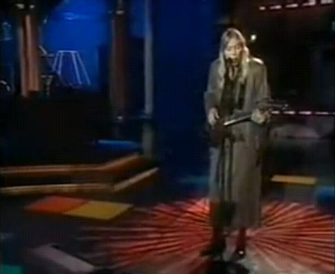 (From a visitor in the front row at the rehearsal): Joni was scheduled to do "The Magdalene Laundries", but apparently it was too long. She tried "Sex Kills," and "Hejira," before settling on "Harry's House" which she played one time to remind herself. After she was finished, the producers told her that the elapsed time was about 3 minutes. She laughed and said, "That's more like television huh?" She then played it again--just on the guitar this time, no vocal.