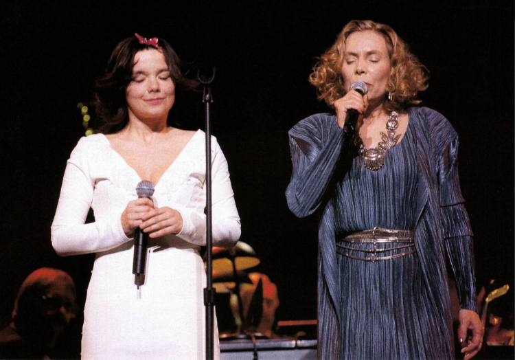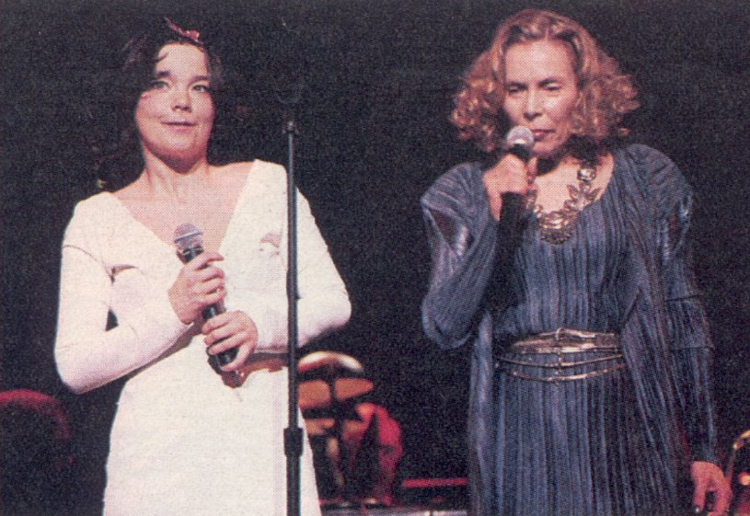By now you will have read Kakki's take on the concert and maybe the impressions of a couple of others. Here are some of my highlightes: Even though she was on last, I'll start with Joni first. A duet with Bjork, imagine that. Great image of them up onstage! A real contrast, the small, gushing junior memmber who got to introduce her and the cool grand dame trading phrases back and forth. This was a moment and Joni got one of two MONSTER receptions from the crowd(the other being for Stevie Nicks.) There were many many people there to see her. The guy next to me said to his girl friend, "where has she been lately?" Joni was right in the KCRW interview, "for the most part people of my generation don't know I'm still in the business."