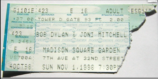 Madison Square Garden, November 1, 1998. I sat in the third row to the right side of the stage. 50 feet away was my musical wonder. Joni confirmed to me her true musicianship by the reworks of her old standards. Incredible how a song can be rewritten.