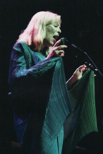 Am still wondering about some of the crowd. I was amazed at how many times people were in and out of their seats in the middle of her songs. If anyone in my row had tried it, I might have lost control of a metal nail file into someone's thigh ... (I know, I look so innocent). The two women to my left never once clapped after songs, although I think they did for "A Case of You" and "Both Sides Now," leading me to think they might have been expecting Joni to do all her old stuff. Then after the concert some guy two rows down was complaining about "Joni Stupid Mitchell." Looking at me with my beatific grin he said, "did *you* like it?" I said I *loved* it, and he remarked to his friend, well, I'll find someone who hated it as much as I did. My stars! What was he expecting? Some of his reaction might have been due to the drink in his hand, which I think was not his first. As I remarked to a few people, on my way in I heard a guy telling a group of friends he wished she'd play the dulcimer again. Hon! Where have you been??