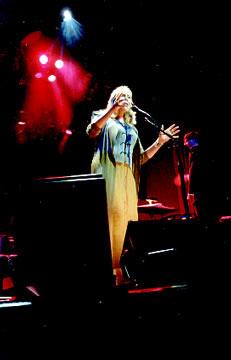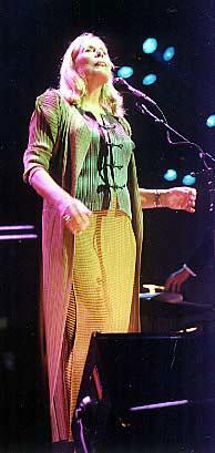 She launched into "Both Sides Now", and even though I expected it, the tears in this reviewer's eyes began to flow. Joni really pours herself into this one, and she obviously feeds on the appreciation showered on her by the crowd. The second standing ovation of the night followed as Joni wrapped up the "Both Sides Now" portion of the show and announced that she was now going to present her "I Hate Show Business" section of the show by presenting new arrangements of her original songs. Again, no surprises here other than even though I knew the songs, the presentations were all new to my ears, and very exhilerating.