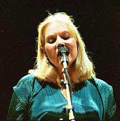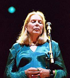 Fern: Joni Mitchell is a real diva in every sense of the word! She is elegant, self-assured, provocative and multitudinously talented. She unquestionably proved this to an audience of almost 5000 appreciative fans on Saturday night, at the Oakdale Theater in Wallingford Connecticut. Backed by a 50 piece orchestra, conducted by Connecticut born arranger Vince Mendozza, Joni performed a twelve song set from the latest CD, "Both Sides Now," as well as a juicy selection of her own material. Throughout the entire concert, Mitchell displayed the ultimate poise and beauty of a princess. Never has a female so impressed me with her warmth, sincerity and overall stage presence!