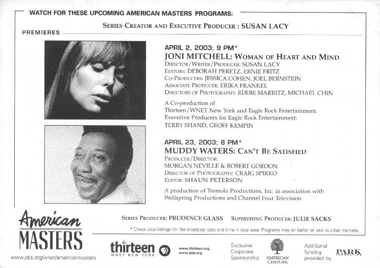 Joni was interviewed by Susan Lacy and Joel Bernstein