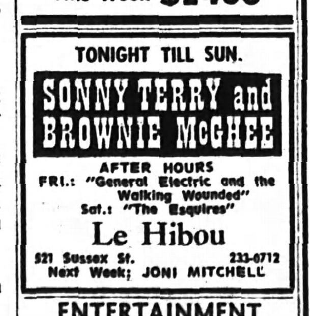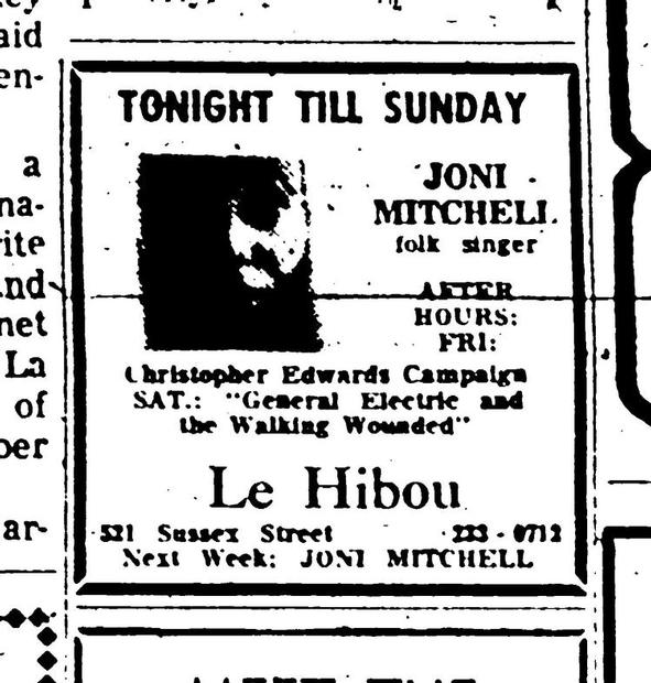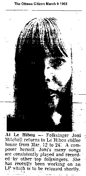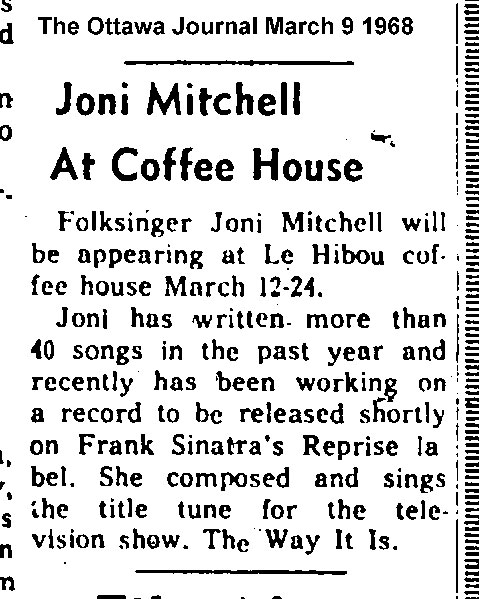 1968.03.12 Joni's next appearance Café Le Hibou Coffee House Ottawa, ON