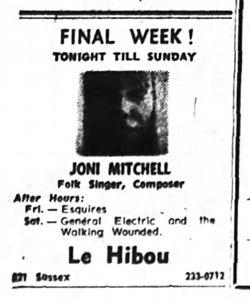 1968.03.24 Joni's next appearance Café Le Hibou Coffee House Ottawa, ON